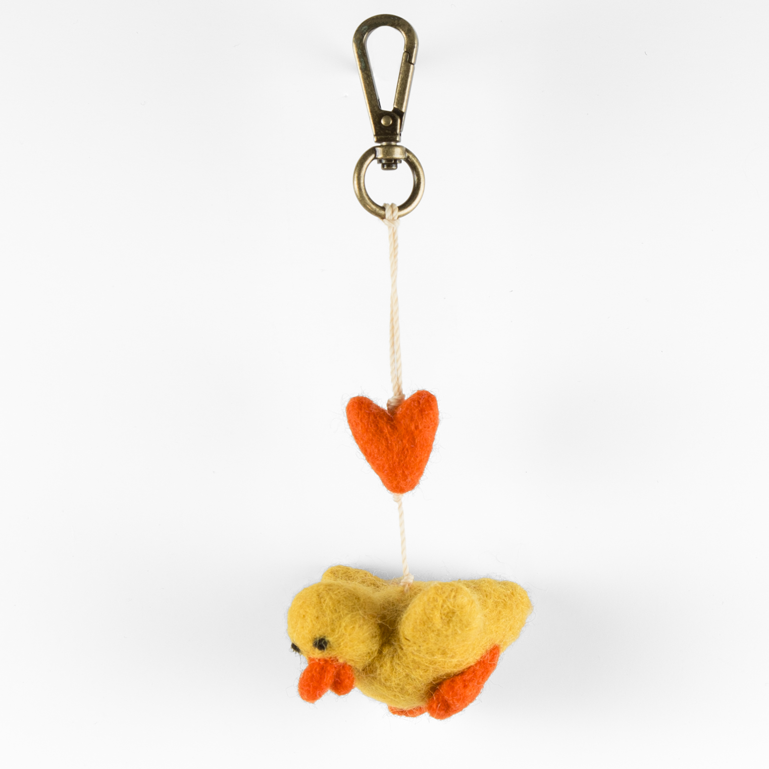 Our Duck Mini Heart String is handmade from yellow and orange felted wool topped with an orange felted wool heart.