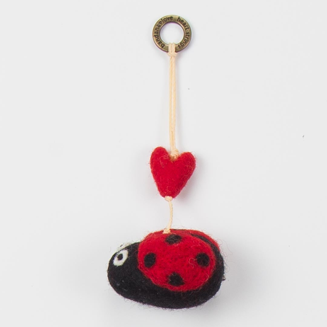Our Ladybug Mini Heart String is handmade from red and black felted wool topped with a red felted wool heart.