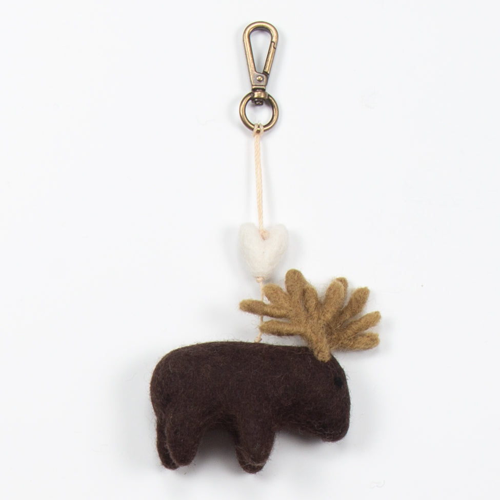 Our Moose Mini Heart String is handmade from brown and tan felted wool topped with a tan felted wool heart.