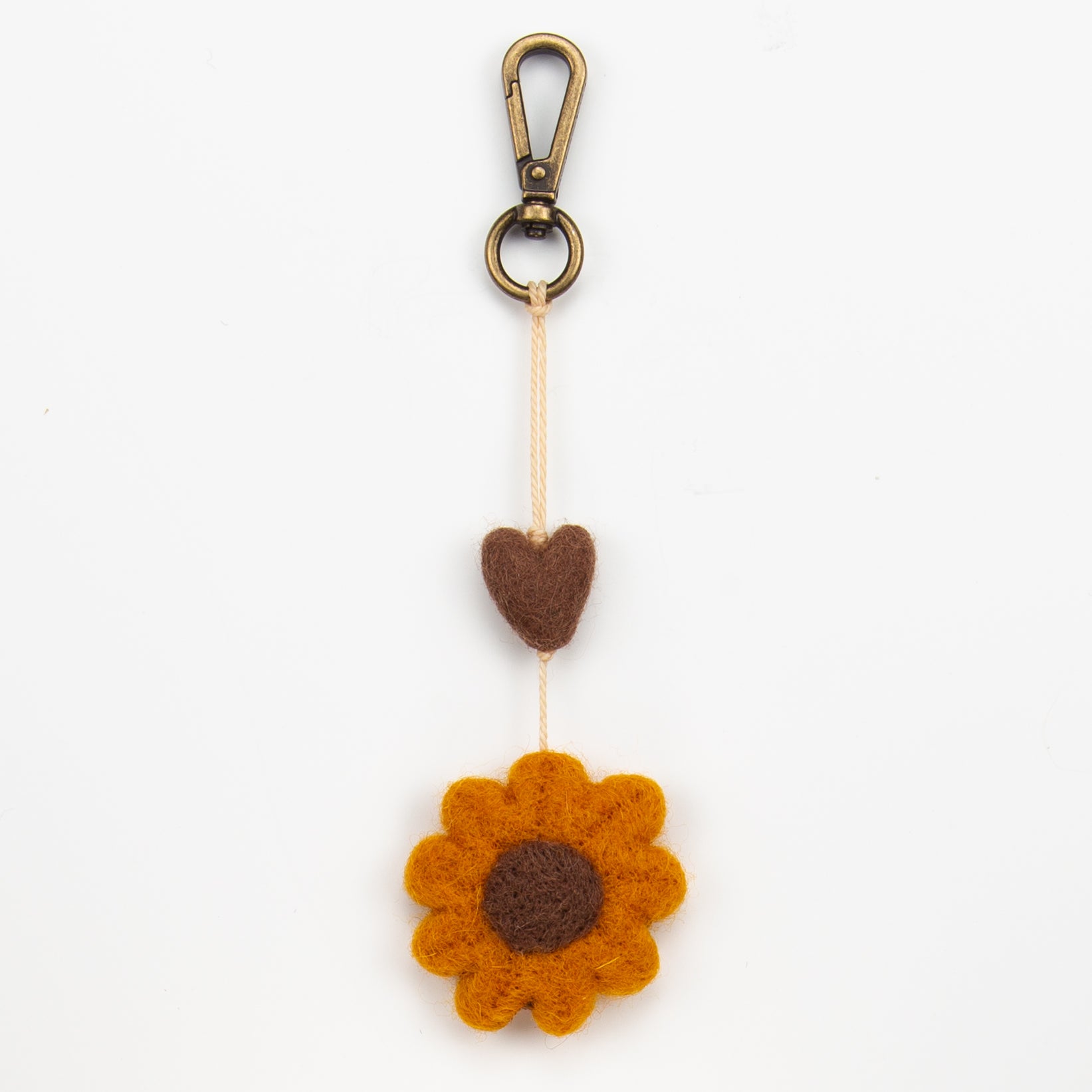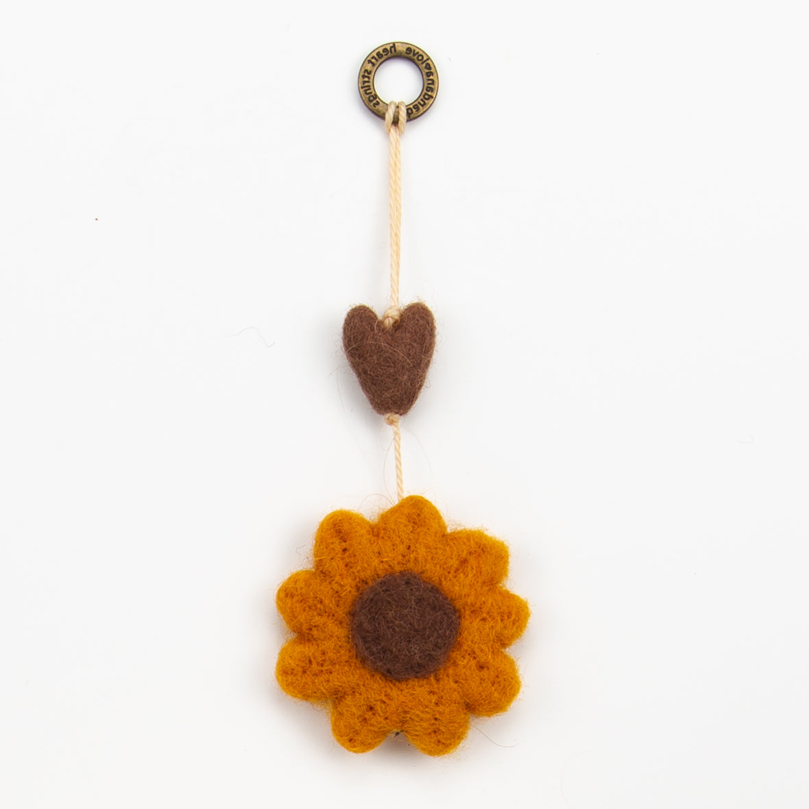 Our Sunflower Mini Heart String is handmade from burnt orange and brown felted wool topped with a brown felted wool heart.