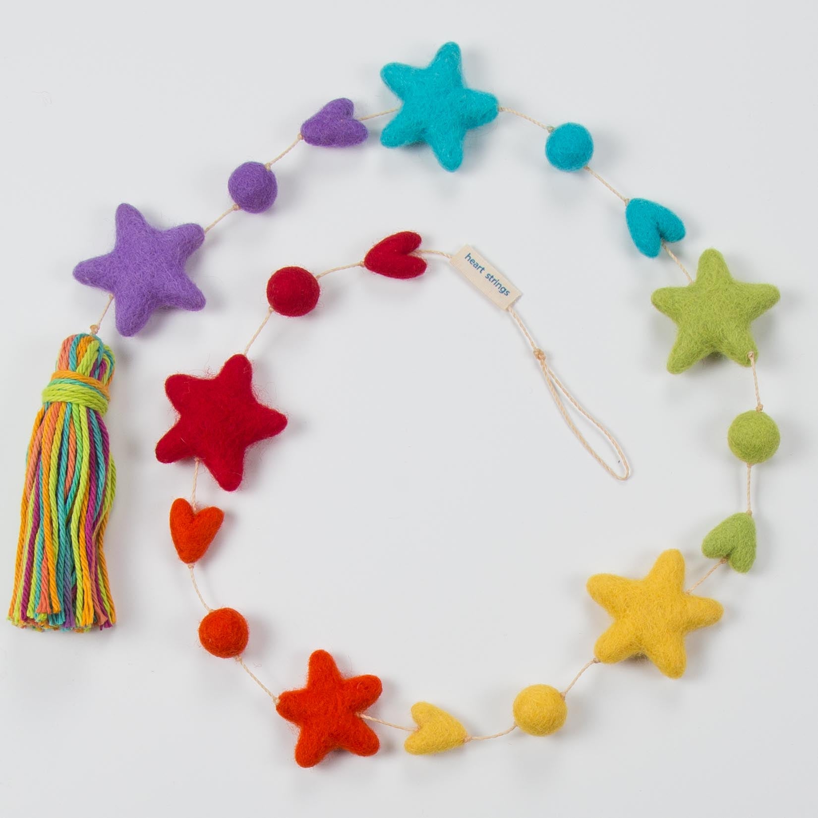 Our Heart Strings look great on walls, doors, or in windows, and hang easily from any hook or rod.